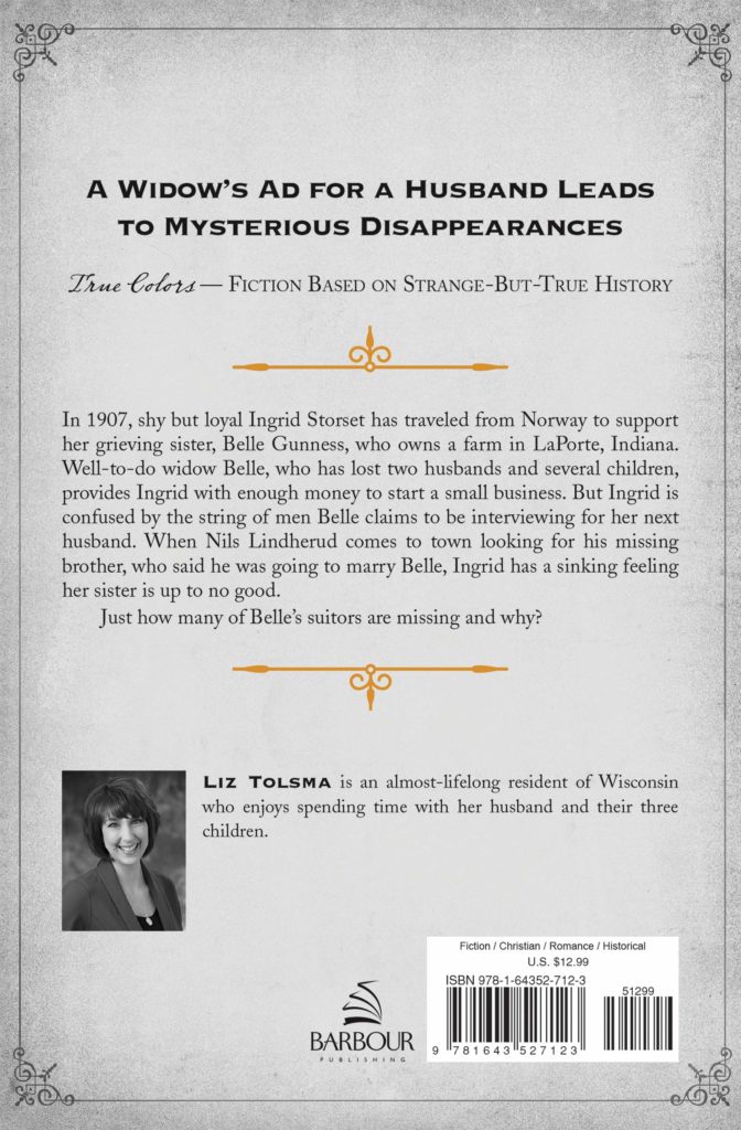 In 1907, shy but loyal Ingrid Storset travels from Norway to support her grieving sister, Belle Gunness, who owns a farm in LaPorte, Indiana. Well-to-do widow Belle, who has lost two husbands and several children, provides Ingrid with enough money to start a small business. But Ingrid is confused by the string of men Belle claims to be interviewing for her next husband. When Nils Lindherud comes to town looking for his missing brother, who said he was going to marry Belle, Ingrid has a sinking feeling her sister is up to no good.