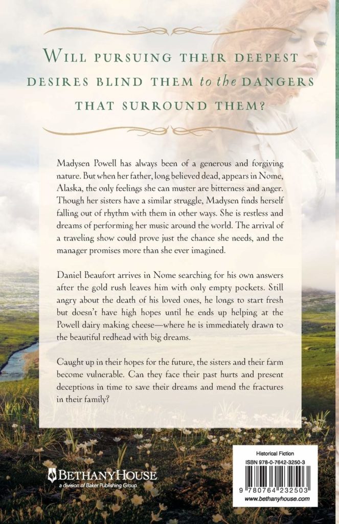 Daniel Beaufort arrives in Nome, searching for his own answers after the gold rush leaves him with only empty pockets. Still angry about the death of his loved ones, he longs to start fresh but doesn’t have high hopes until he ends up helping at the Powell dairy making cheese. Drawn to the beautiful redhead with big dreams, will deceptions from the past tear apart any hope for the future?