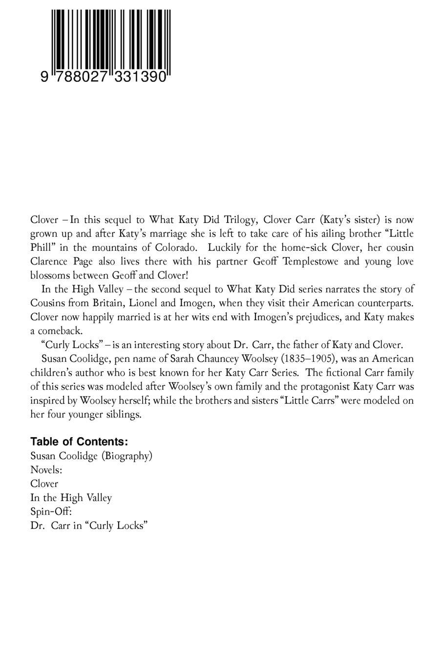 Clover is just as enchanting as the previous novels. Clover is the sister down from Katy. She is quieter but just as kind and good hearted.
