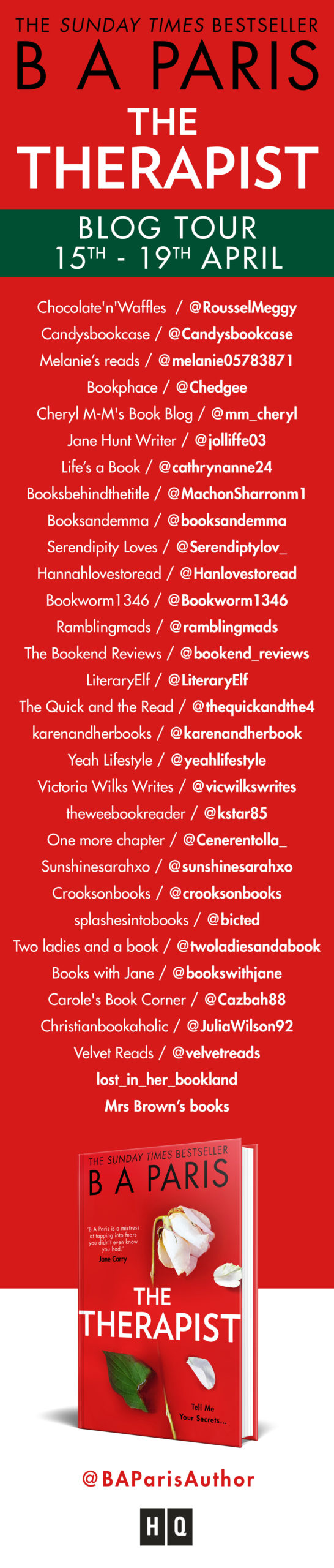 The Therapist by B.A. Paris is a marvellous contemporary psychological thriller that had me gripped from the start.