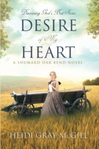 Desire Of My Heart by Heidi Gray McGill is a delightful Christian historical novel fully grounded in God. It is the first book in the Shumard Oak Bend series.