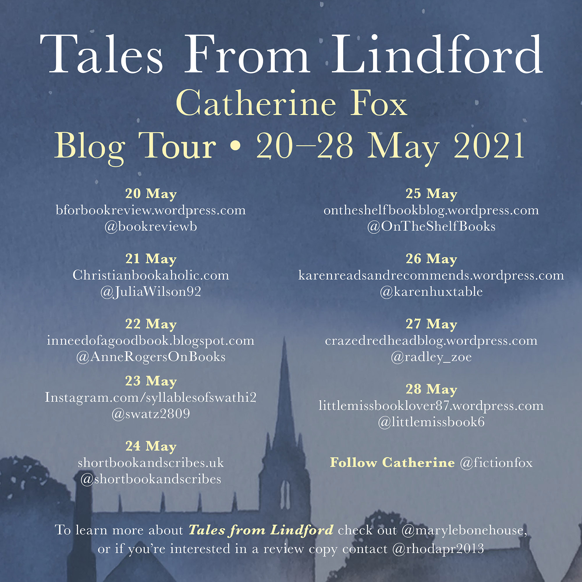 Tales From Lindford by Catherine Fox is a contemporary novel looking back at 2020 from a birds eye view of the residents of Lindford. We drop in and out of their lives. It is the fourth book in the Lindchester series but can be read as a stand-alone.