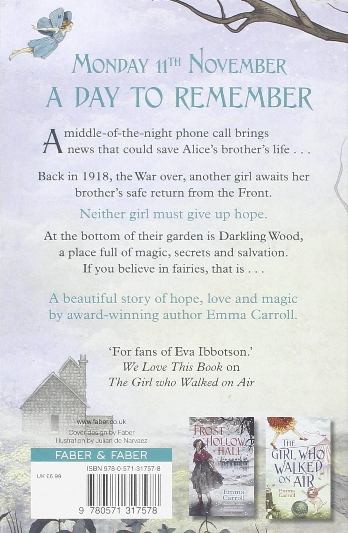 In Darkling Wood by Emma Carroll is a wonderful children’s dual timeline novel that will enchant the reader. It is perfect for ages ten and over.
