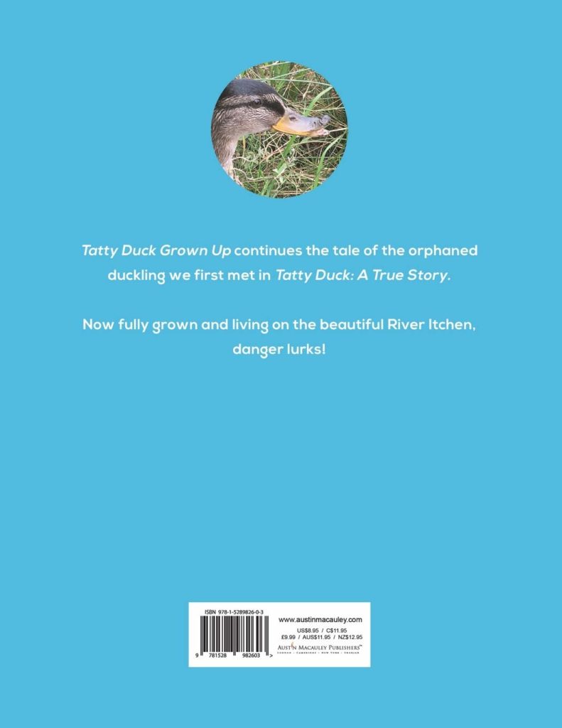 Tatty Duck Grown Up by Juliet Deacock is a beautiful children’s book for the under fives. The story is based on a real-life duckling who was found orphaned on a pond. We see her photo on the reverse of the book.
