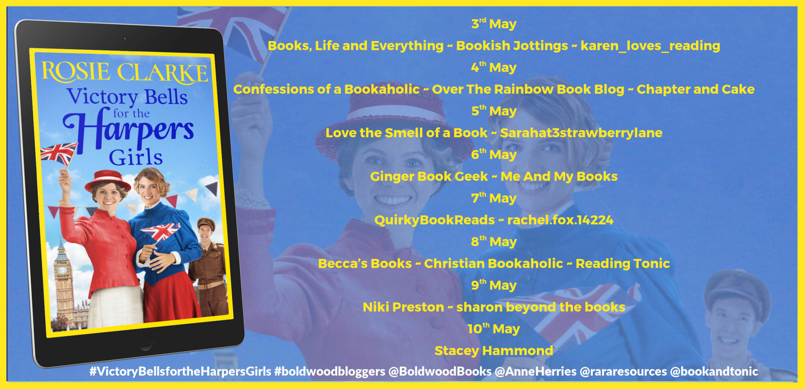 Victory Bells For The Harpers Girls by Rosie Clarke is a marvellous historical novel. It is the sixth book in the Harpers Emporium series but can be read as a stand-alone.