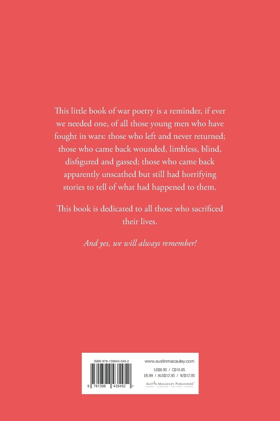 Thank you D.A. Nicholson for an absolutely marvellous and powerful book of war poetry.