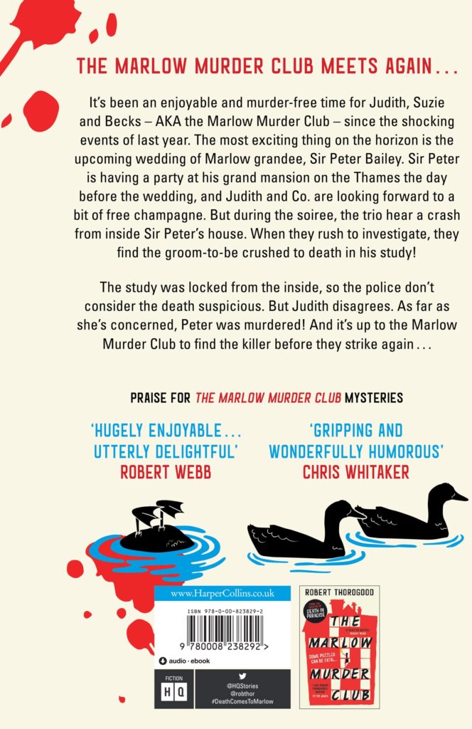 Death Comes To Marlow by Robert Thorogood is a marvelous contemporary cosy crime drama which I thoroughly enjoyed. It is the second book in the Marlow Murder Club series but can be read as a stand-alone. I recommend reading book one first for maximum enjoyment.
