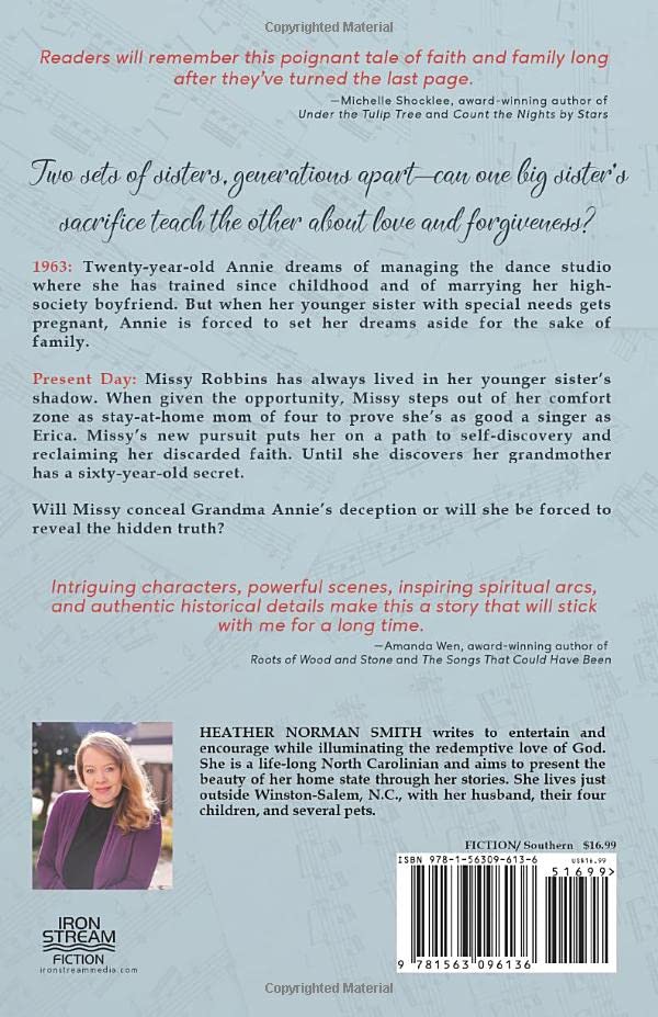 Present Day: Missy Robbins has always lived in her younger sister’s shadow. When given the opportunity, Missy steps out of her comfort zone as stay-at-home mom of four to prove she’s as good a singer as Erica. Missy’s new pursuit puts her on a path to self-discovery and reclaiming her discarded faith. Until she discovers her grandmother has a sixty-year-old secret.