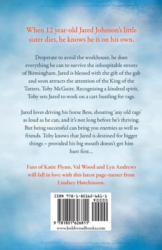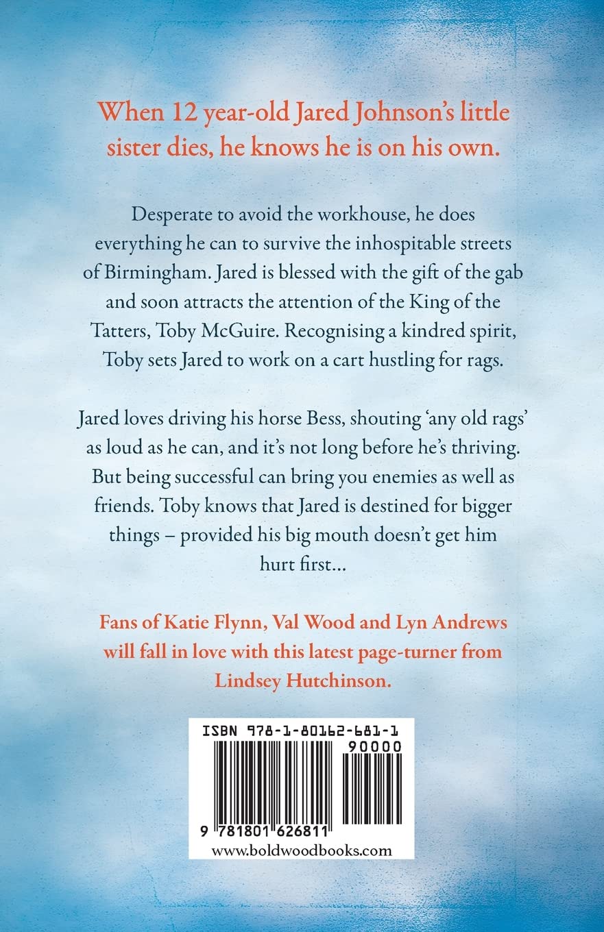 Desperate to avoid the workhouse, he does everything he can to survive the inhospitable streets of Birmingham. Jared is blessed with the gift of the gab and soon attracts the attention of the King of the Tatters, Toby McGuire. Recognising a kindred spirit, Toby soon has Jared out on a cart hustling for rags.