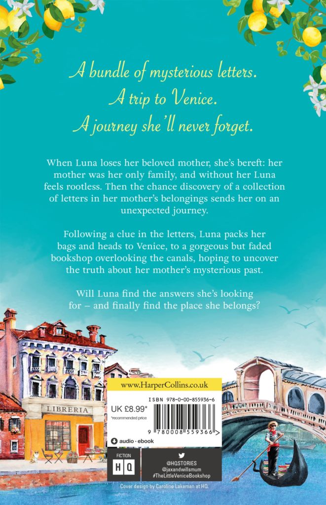 Following a clue in the letters, Luna packs her bags and heads to Venice, to a gorgeous but faded bookshop overlooking the canals, hoping to uncover the truth about her mother’s mysterious past.