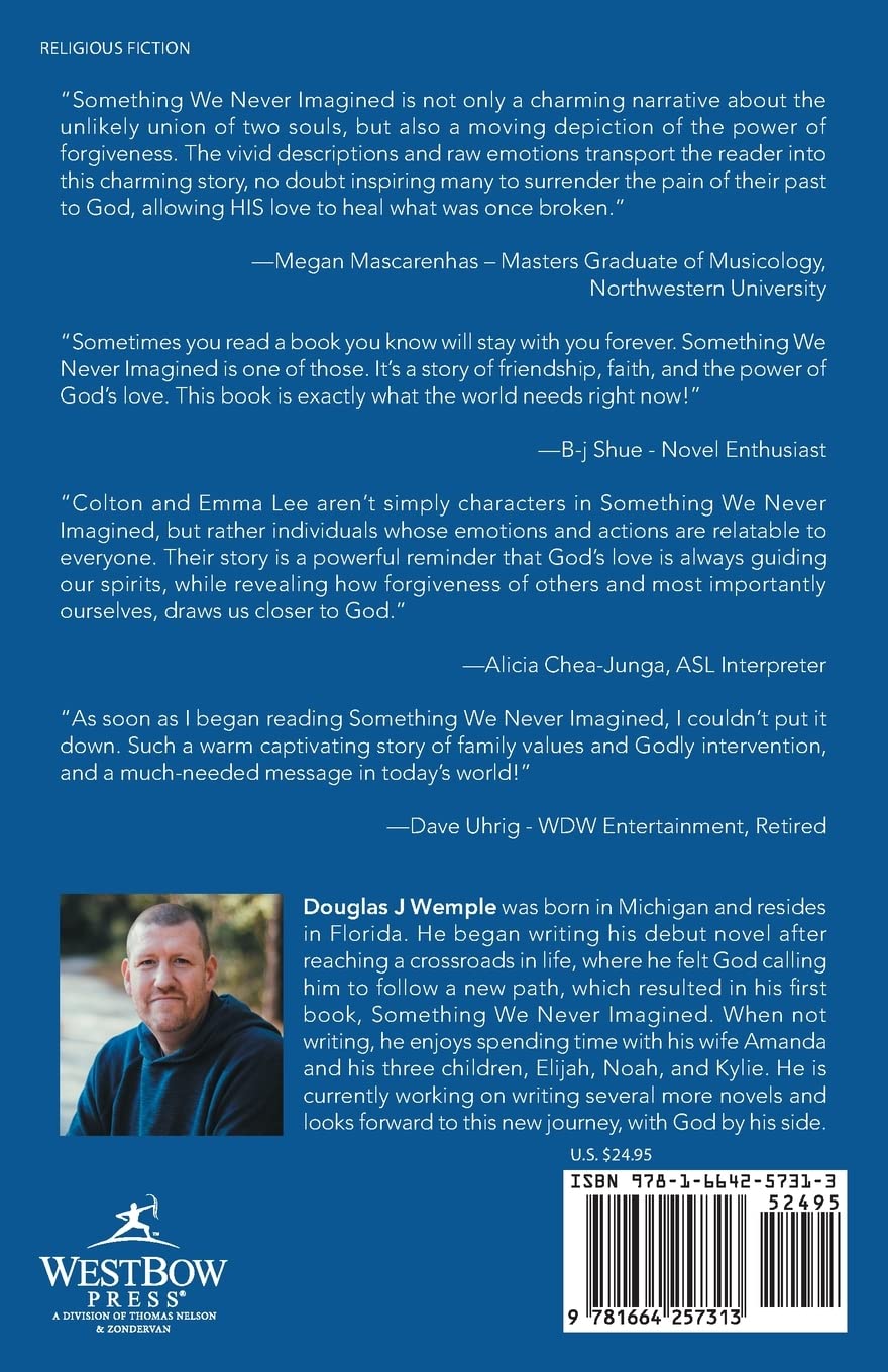 Something We Never Imagined by Douglas Wemple is a beautiful contemporary Christian novel that will fill your heart and soul with the love of God.