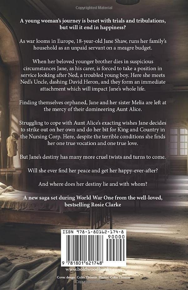 Returning home, Jane and her sister, Melia are soon orphaned and left at the mercy of their Aunt Alice. When War breaks out Jane decides to strike out on her own and do her bit for King and Country in the Nursing Corp. Here, despite the terrible conditions she finds her true vocation and her one true love. But Jane’s destiny has many more twists and turns to come.