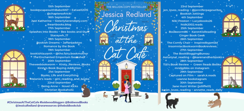 Christmas At The Cat Café by Jessica Redland is the most wonderful contemporary festive offering that I just could not get enough of. I think Jessica Redland wrote her book just for me! I am a crazy cat lady who also has fibromyalgia. I like nothing better than to be surrounded by cats whilst wearing cat themed clothing! I talk to every cat I meet. I adored all of our cats and miss those who are now running free over Rainbow Bridge.