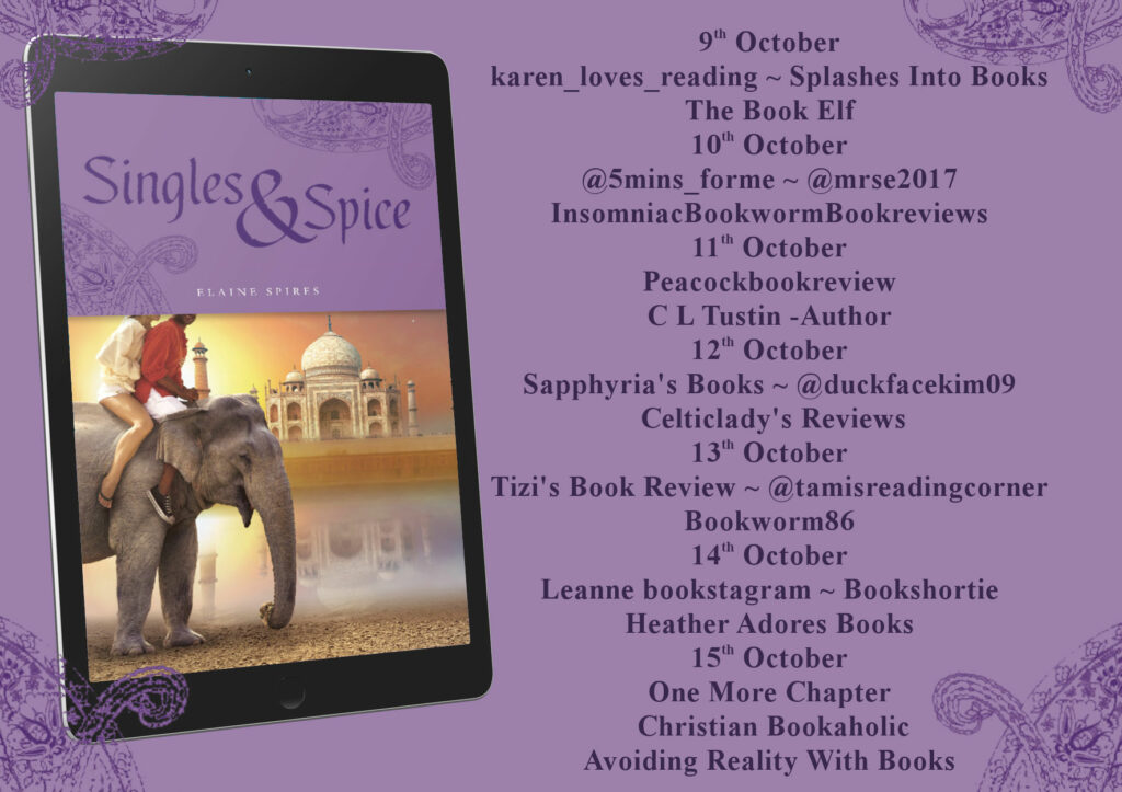 I thoroughly enjoyed my time as I joined the characters on a package tour to India. Elaine Spires writes with passion, knowledge and enthusiasm as the sights and sounds of India came to life. I could almost ‘see’ the vibrancy of the colours, ‘smell’ the spices and ‘feel’ the heat. My senses were assaulted in a good way.