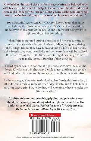 Kitty held her husband close to her chest, covering his beloved body with her own. She called for help, but none came. She stared down at the face she loved so well. “Edgar! Don’t go, my darling, not now. Not after all we’ve been through… please don’t leave me here alone…” 1944. Beautiful American Kitty Larsson knows better than most that fighting the Nazis comes at a price. She’s spent years working undercover as an agent for the British and knows that doing what is right could cost her everything… When Kitty is captured during a mission and her true identity is revealed, she learns her beloved husband, Edgar, has gone missing. The Gestapo tell her they have him, and that his life is in her hands. If she doesn’t cooperate, he will die and her worst fears will be realized. If they are telling the truth, Kitty’s secrets might be enough to save the man she loves… But what if they are lying? Fueled by her desire to do what is right, but also to save the man she loves, Kitty knows that she won’t be able to rest until she can escape and find Edgar. Because surely, somewhere out there, he is still alive… As the war rages, Kitty tries to think of a plan. Surely this isn’t where it all ends? She needs to know whether Edgar is safe, and to hold him in her arms once again. But, to do that, will Kitty finally have to make the ultimate sacrifice? An absolutely unputdownable, gripping and powerful story about love, courage and doing what is right in the midst of the darkness of World War 2. Perfect for fans of The Nightingale, My Name is Eva and All the Light We Cannot See. ——————-