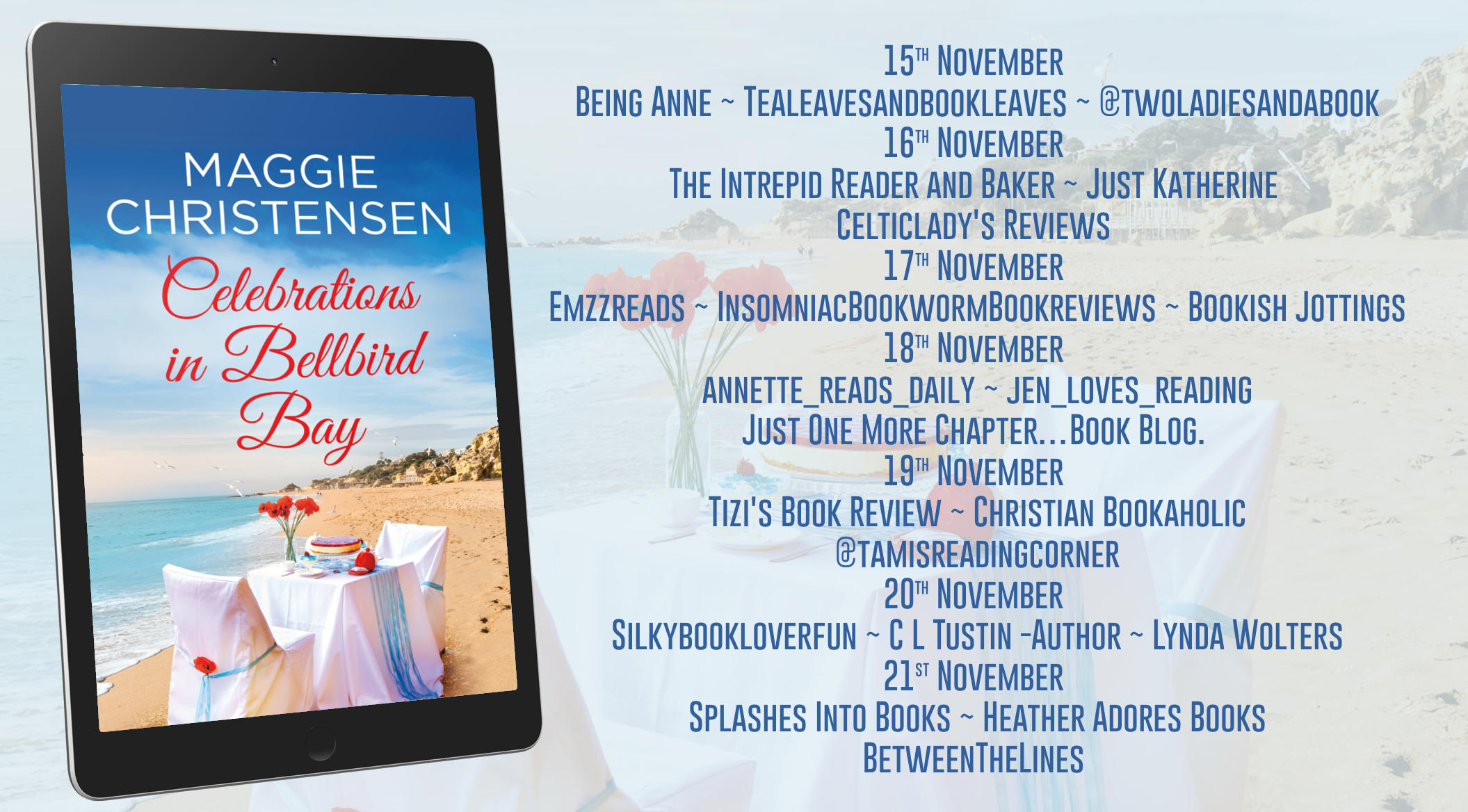 Celebrations In Bellbird Bay by Maggie Christensen is a most delightful contemporary novel. It is the eighth book in the charming Bellbird Bay series but can be read as a stand-alone. I recommend reading the previous books first in order to get to know the residents of Bellbird Bay.