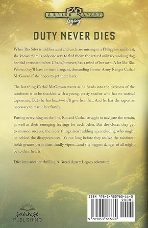 When Rio Silva is told her aunt and uncle are missing in a Philippine rainforest, she knows there is only one answer to finding them: the retired military working dog her dad entrusted to her. Chaos, however, has a mind of her own, a lot like Rio. Worse, she’ll have to trust arrogant and bossy former Army Ranger, Cathal McGowan if she hopes to get them back.