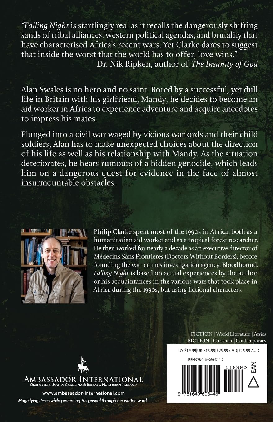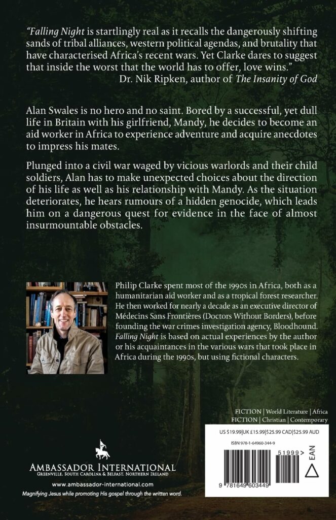Falling Night by Phil Clarke is a powerful and horrifying Christian novel set in the 1990’s. It is a fictional account but grounded in fact as it is based on the author’s experiences in Africa during the 1990’s.