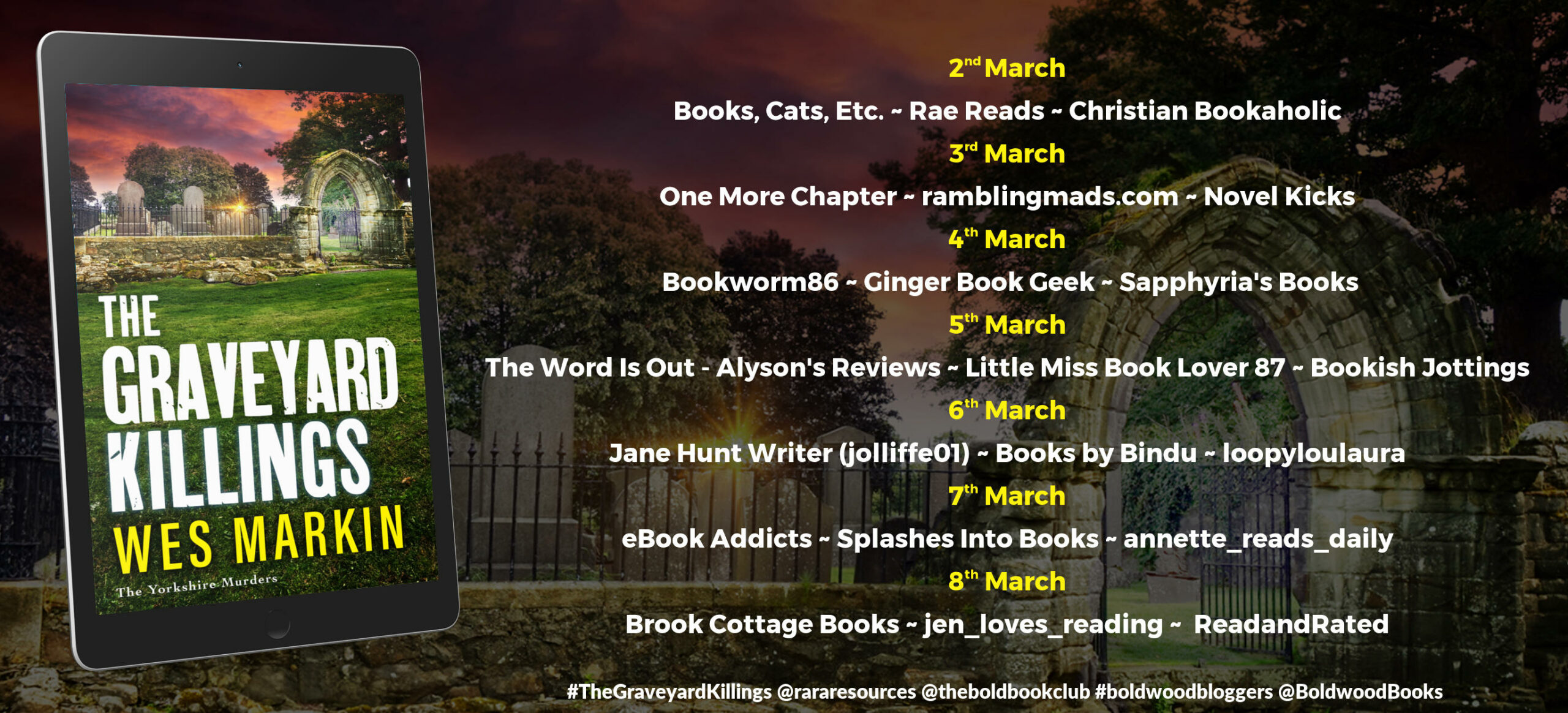 The Graveyard Killings by Wes Markin is a fabulous contemporary murder suspense that completely consumed me. It is the fourth book in The Yorkshire Murders series but can be read as a stand-alone. I recommend reading the previous books first for continuity, understanding and character progression.