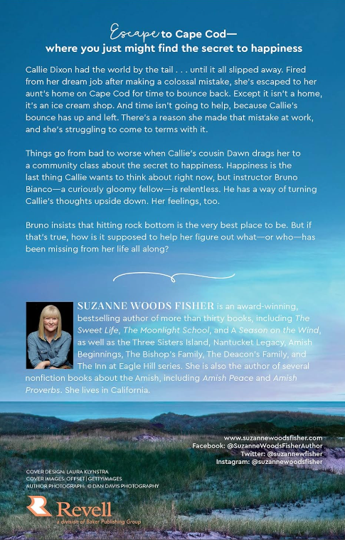 The Secret To Happiness by Suzanne Woods Fisher is the most charming contemporary Christian novel that I read mainly in one sitting. I paused only to sleep. It is the second book in the Cape Cod Creamery series and can be read as a stand-alone. However, I recommend reading the books in order, so that you see character progression and development, as well as maximum enjoyment.