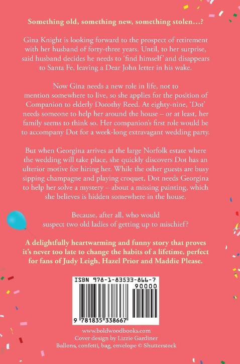 Now Gina needs a new role in life, not to mention somewhere to live, so she applies for the position of Companion to elderly Dorothy Reed. At eighty-three, ‘Dot’ needs someone to help her around the house – or at least, her family seems to think so. Her companion’s first role would be to accompany Dot for a week-long extravagant wedding party.