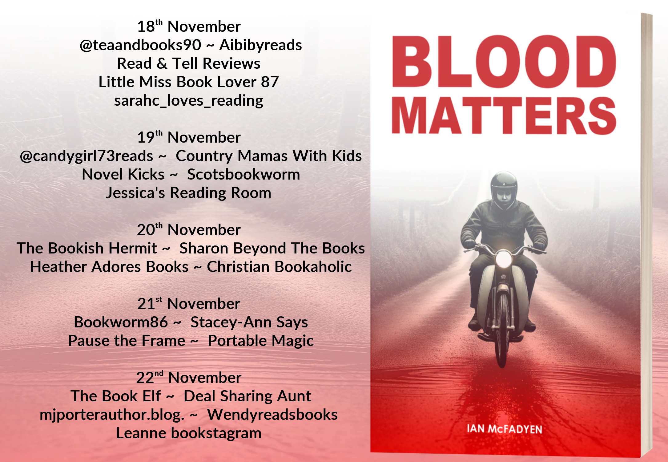 Blood Matters by Ian McFadyen is a totally gripping contemporary crime novel that I just could not put down. I read it in just one sitting. It is the tenth book in the DCI Carmichael series but can be read as a stand-alone.