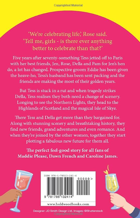 But Tess is stuck in a rut. Rather than embrace her independence, she watches on as Rose wows Paris, Jen explores Iceland and Pam heads to Greece. But when tragedy strikes Della, Tess is shaken into action. They both need a change of scenery and longing to see the Northern Lights, they head to the Highlands of Scotland and the magical Isle of Skye.
