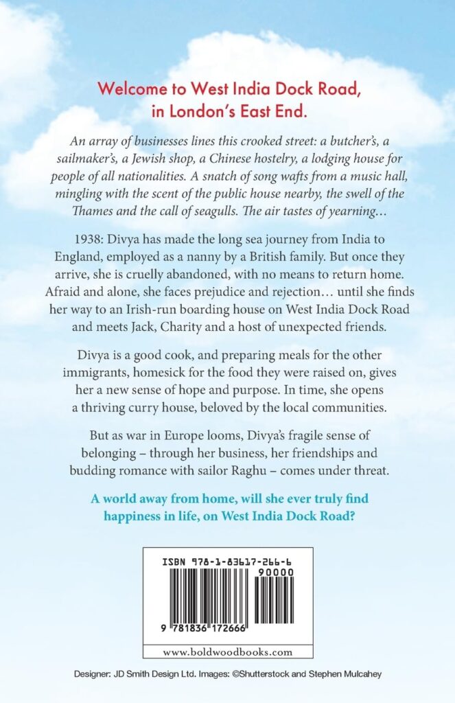 1938: Divya has made the long sea journey from India to England, employed as a nanny by a British family. But once they arrive, she is cruelly abandoned, with no means to return home. Afraid and alone, she faces prejudice and rejection… until she finds her way to an Irish-run boarding house on West India Dock Road and meets Jack, Charity and a host of unexpected friends.