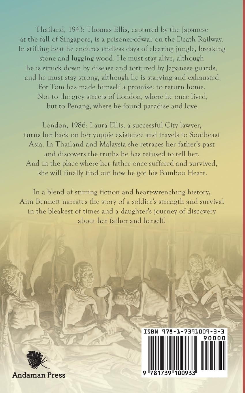 Ann Bennett is a British author of historical fiction. Her first book, Bamboo Heart: A Daughter’s Quest, was inspired by researching her father’s experience as a prisoner of war on the Thai-Burma Railway and by her own journey to uncover his story. It won the Asian Books Blog prize for fiction published in Asia in 2015, and was shortlisted for the best fiction title in the Singapore Book Awards 2016.