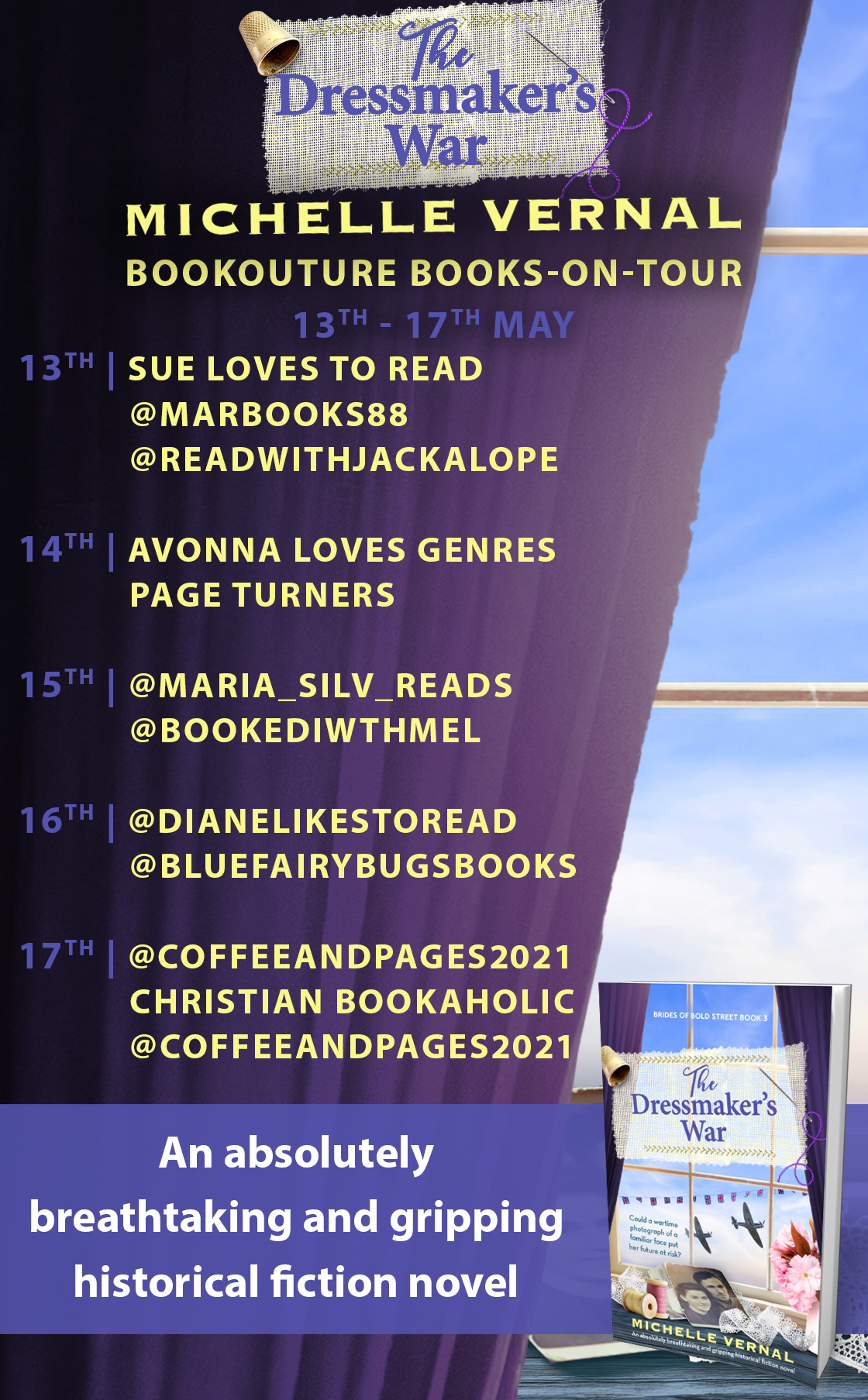 The Dressmaker’s War by Michelle Vernal is a timeslip novel that entertained me from the start. It is the third book in the Brides Of Bold Street but can be read as a stand-alone.