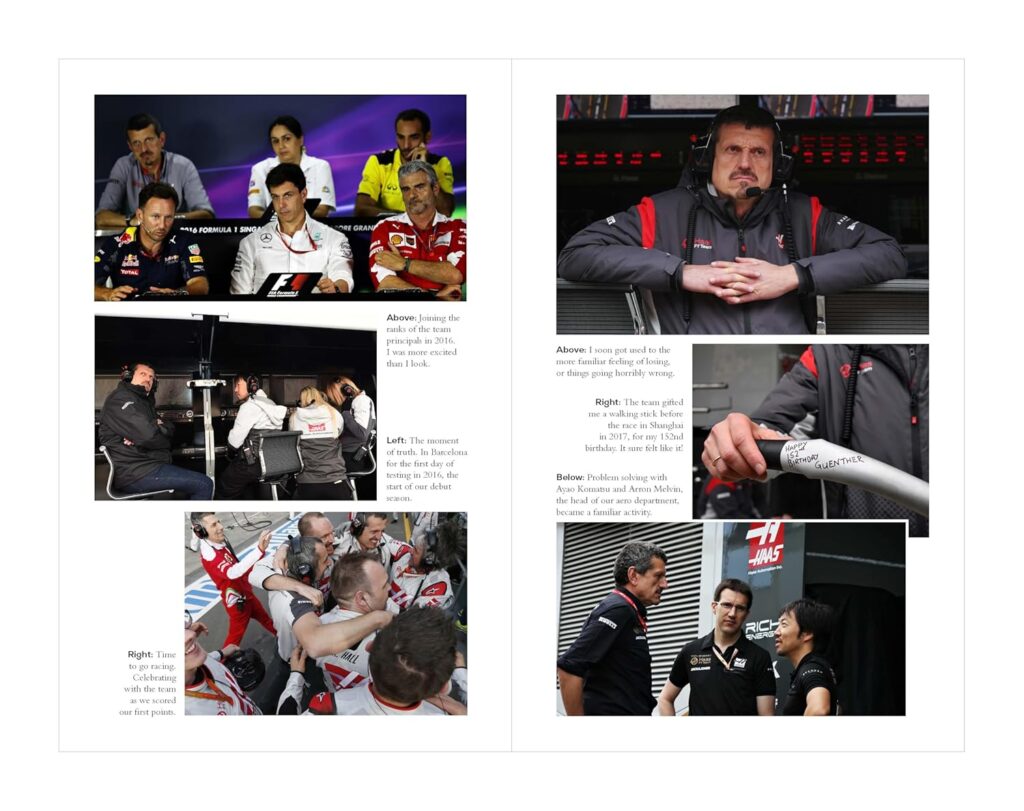 From its’ inception to the end of 2023 the reader is immersed in the life of the Haas team. We see the drive of Guenther Steiner to bring the F1 team to life, and his no-nonsense attitude to running the team.