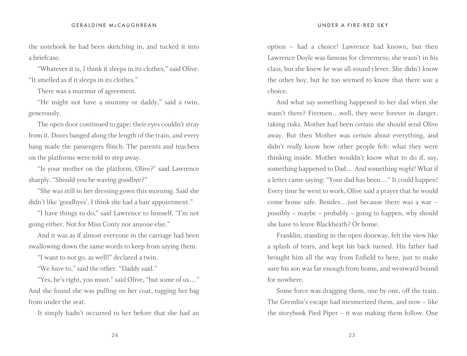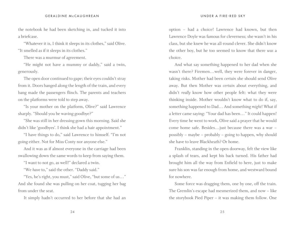 Under A Fire Red Sky by Geraldine McCaughrean is a powerful historical novel for ages ten years and over.