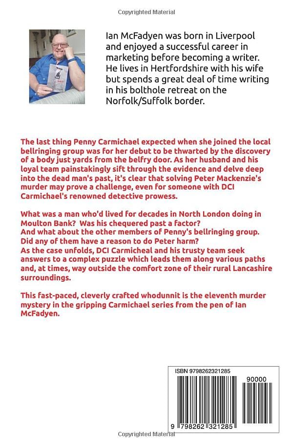 The last thing Penny Carmichael expected when she joined the local bellringing group was for her debut to be thwarted by the discovery of a body just yards from the belfry door. As her husband and his loyal team painstakingly sift through the evidence and delve deep into the dead man’s past, it’s clear that solving Peter Mackenzie’s murder may prove a challenge, even for someone with DCI Carmichael’s renowned detective prowess.