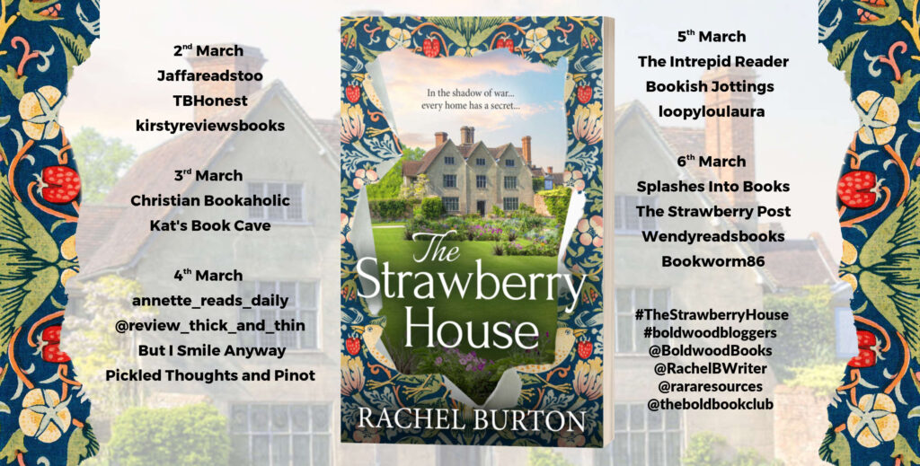The Strawberry House by Rachel Burton is a powerful historical novel set over two time periods. It has its’ roots in facts as we hear about William Morris and the pre-Raphaelite artists. The action is set in 1938 and 1952. These alternate.